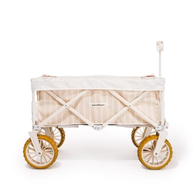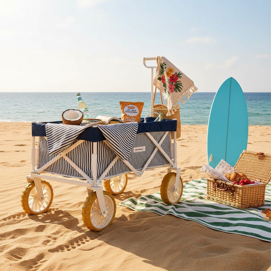 With its retro color-blocking design, sturdy frame, and non-slip tires, this cart can hold a picnic basket, toys, and iced drinks, making it a must-have for creating a cozy atmosphere for beach outings and picnics.