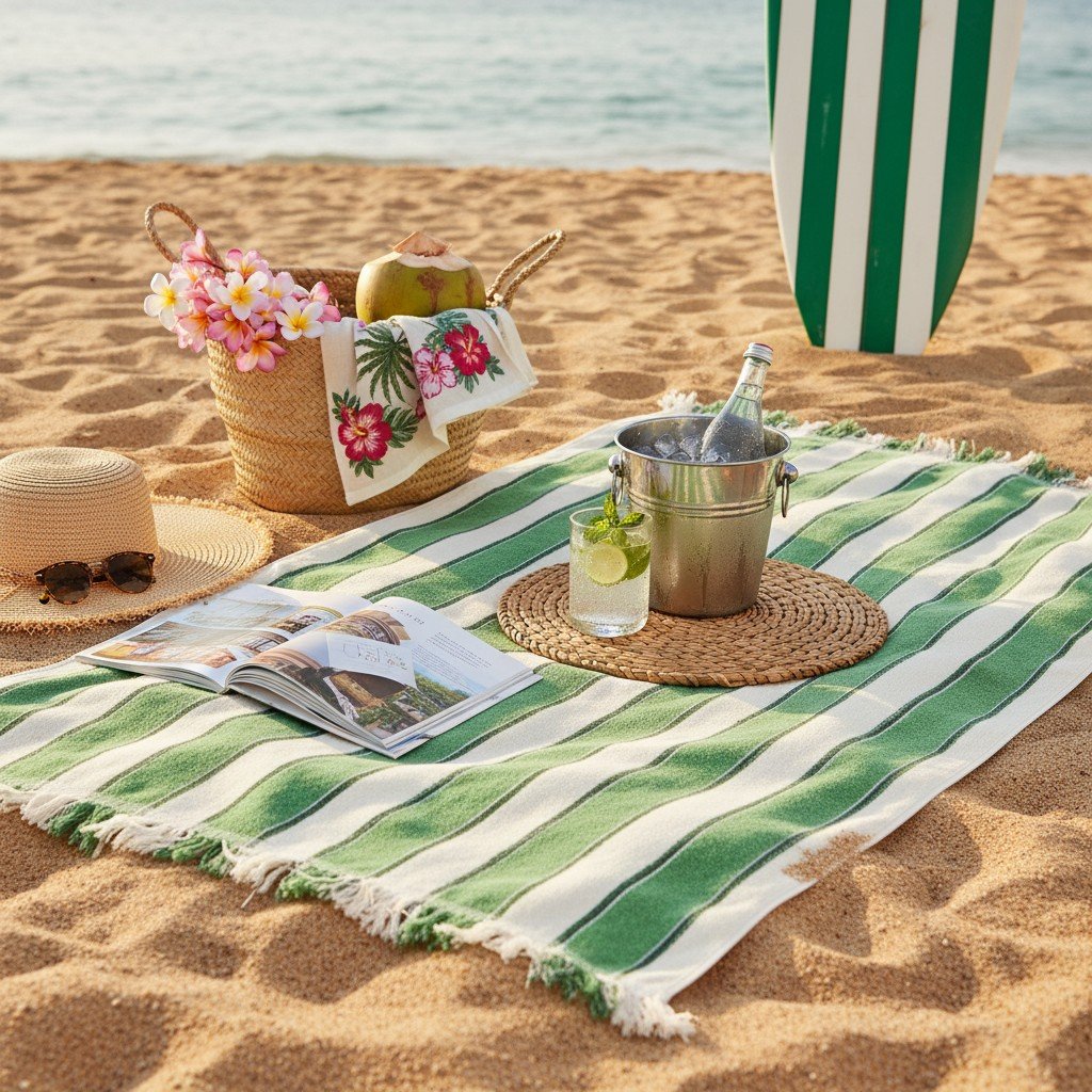 In the soft embrace of the golden beach, a delicate beach blanket is a warm harbor for your rest time. It can not only isolate the fine sand and dampness, but also add a touch of color and comfort to your beach party with family and friends.